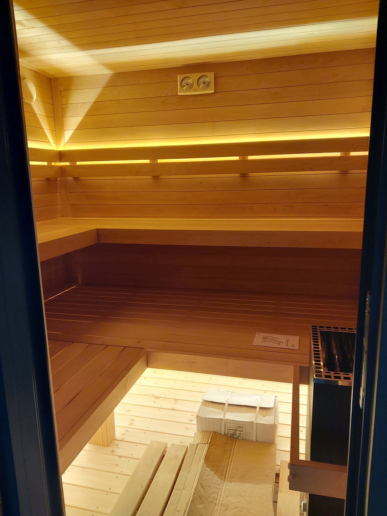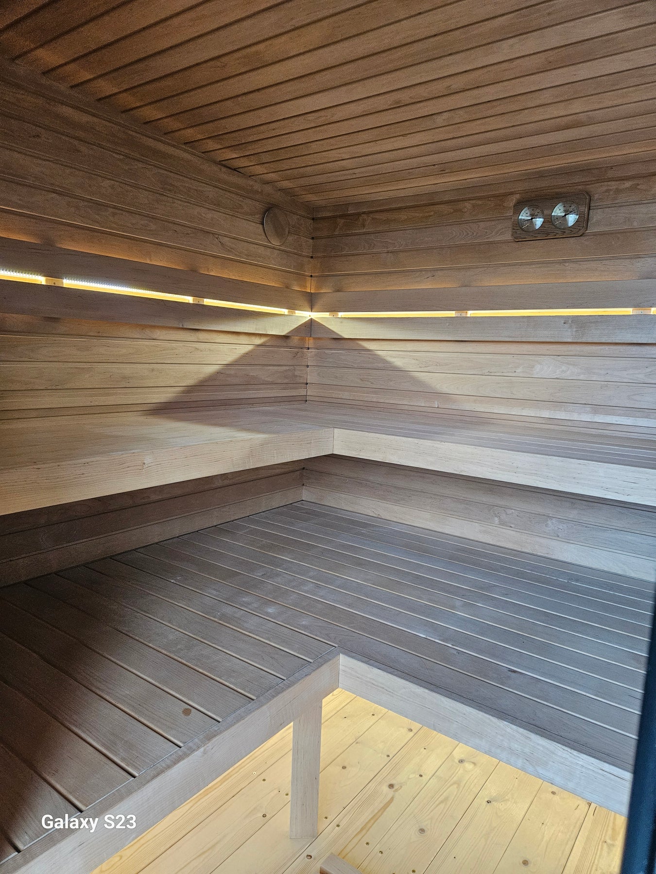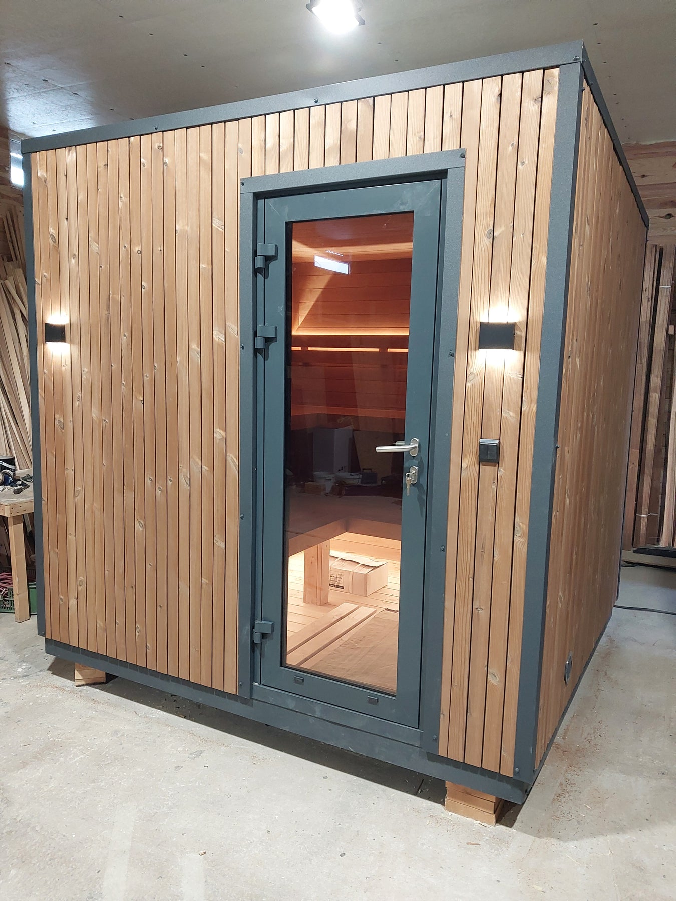 Isolierte Aussensauna, Aluminium-Türe abschliessbar mit Isolierglas